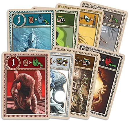 The player who first manages to add the required number of markers by paying crystals to the Obelisk wins the game. (four markers in a 4-player game, five markers in a 3-player game, and six markers in a 2-player game)