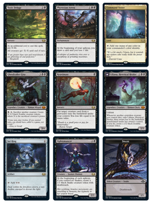 These cards have been selected to showcase iconic black strategies in Commander, and each one has been given new art and references to popular legendary characters.