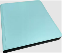 These generic 12-pocket zippered binders will store up to 480 cards in sleeves. Pages are side load.
