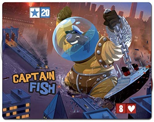 With King of New York: Power Up!, Captain Fish, Sheriff, and their fellow monsters now have two unique sets of evolution cards (112 cards total) for both King of New York and King of Tokyo — and a new challenger joins them: Mega Shark!
